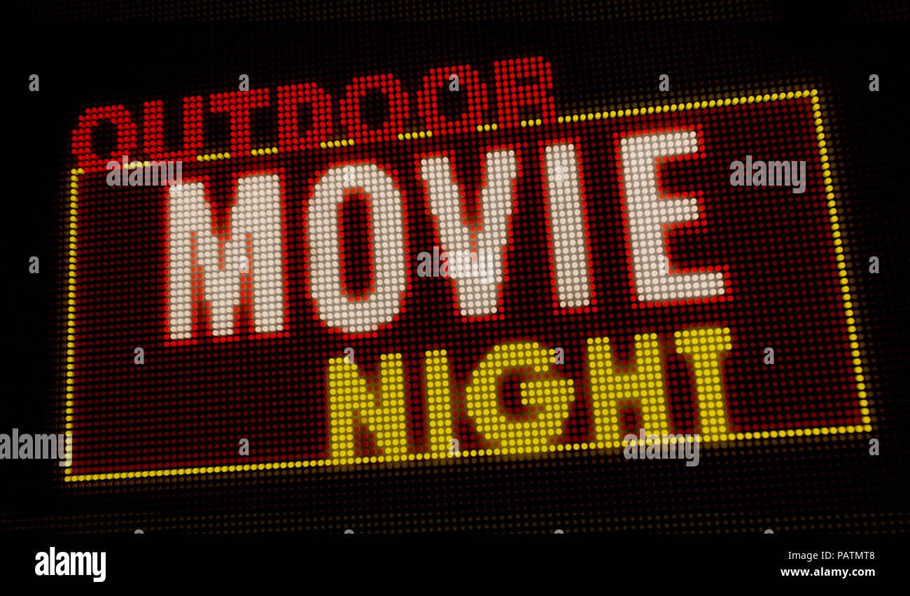 Outdoor Movie Night Retro Intro Illuminated Letters On Big Neon Display With Large Pixels Bright Light Text On Bulbs Display Entertainment Event Adv Stock Photo Alamy