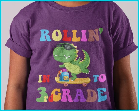 Rollin In To Third Grade Skater Dinosaur T Rex On Skateboard Etsy